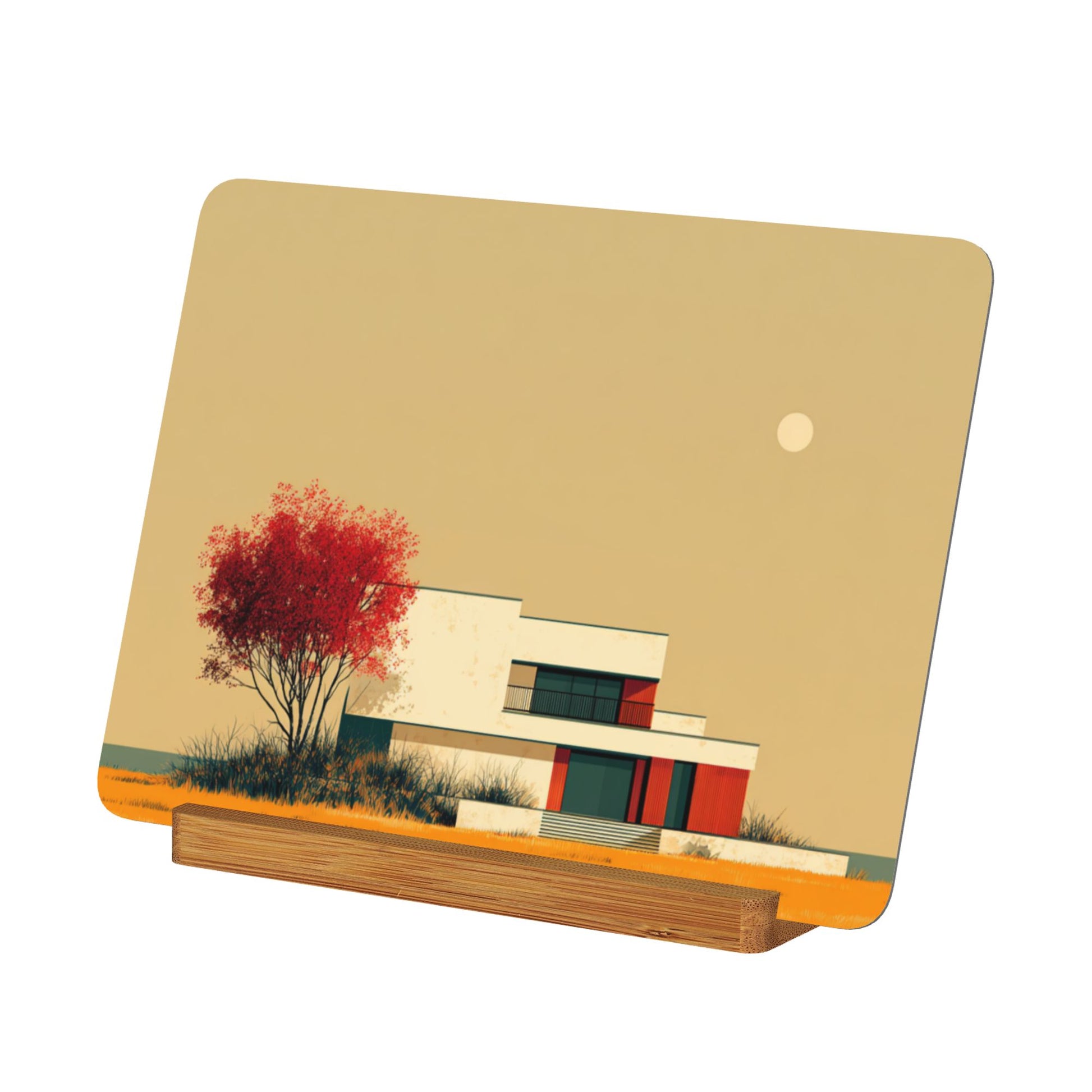 Horizontal Modern Metal Photo Display with Wooden Stand – Minimalist Tabletop Art Decor for Home & Office